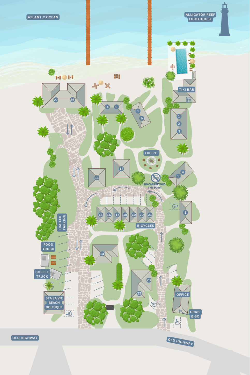 View the Pines & Palms Resort map to get a clear look at our property layout. Easily locate your accommodations, resort amenities, and key points of interest for a seamless stay.